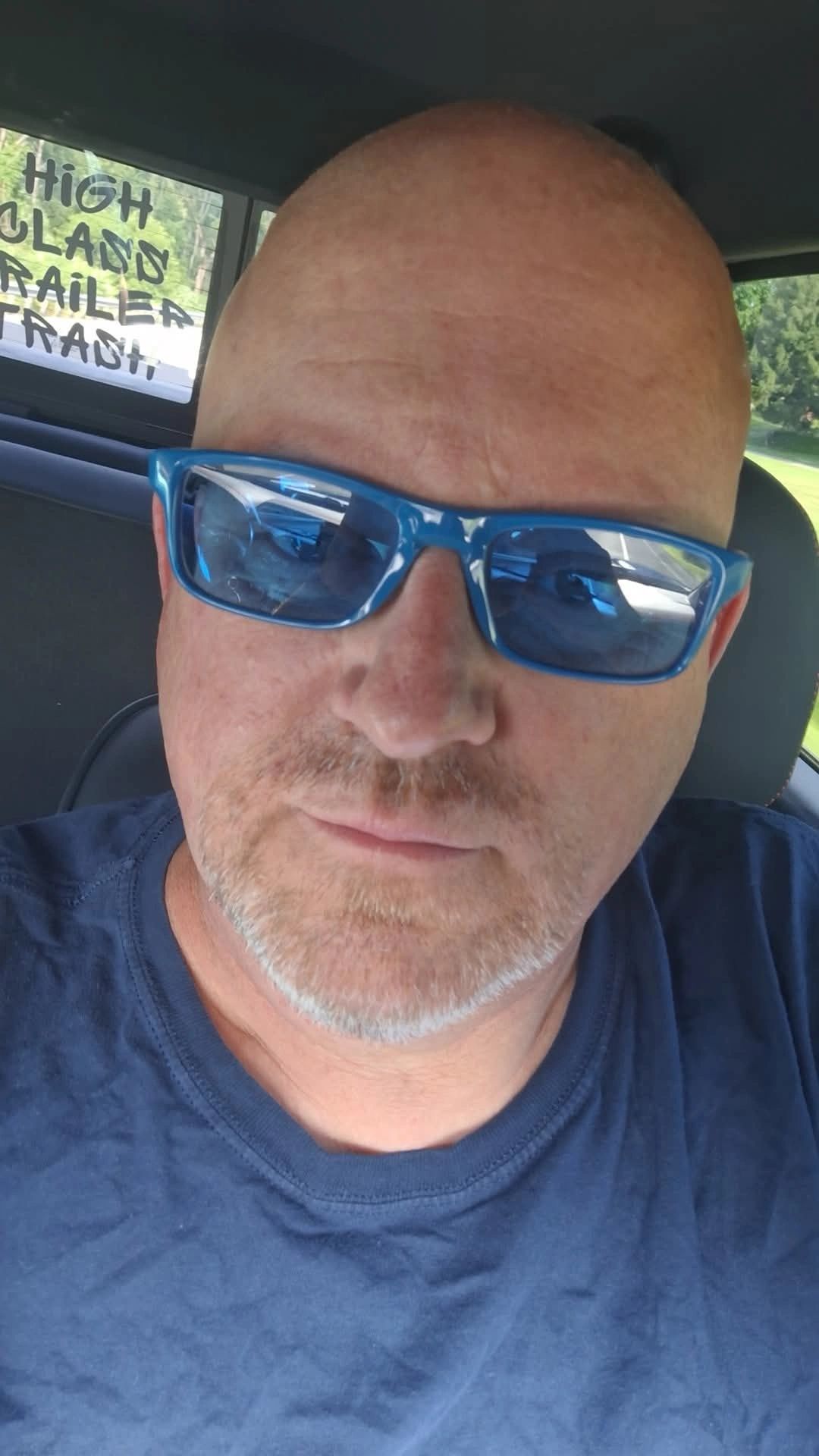 Man in blue hoodie sitting on a Yeti cooler under a trash sign.